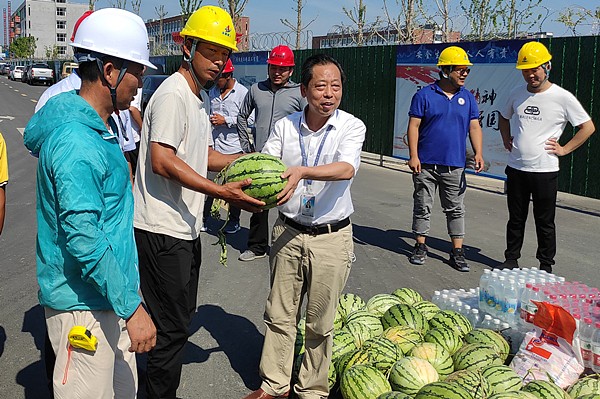 慰問過程中,院領(lǐng)導(dǎo)一行實(shí)地查看深入了解了高溫天氣下一線建設(shè)者們的工作及生活狀況,施工單位項(xiàng)目部防暑降溫措施開展情況,對(duì)他們高溫下堅(jiān)守崗位,為學(xué)院的建設(shè)發(fā)展做出的積極貢獻(xiàn)表示感謝。叮囑大家在緊張工作的同時(shí)要確保生產(chǎn)安全,特別注意做好自身的防暑降溫,勞逸結(jié)合。