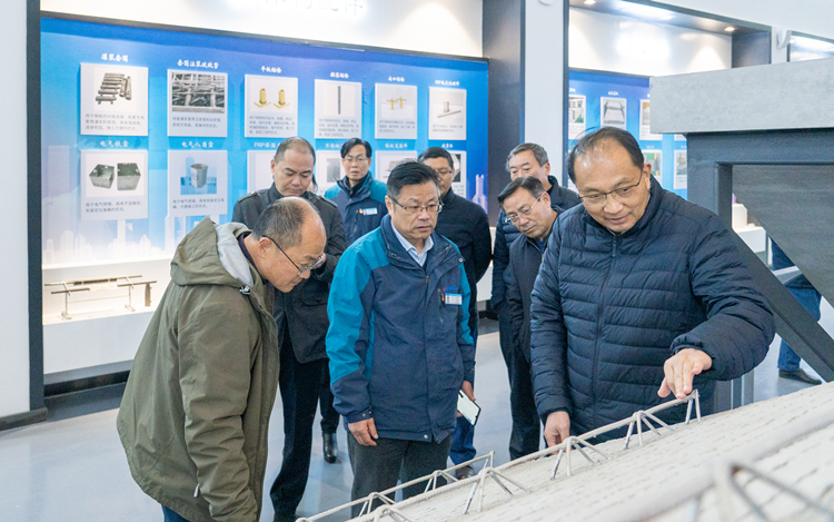 何向陽一行參觀了建筑工業(yè)公司生產(chǎn)車間,詳細(xì)了解了裝配式建筑固定模臺生產(chǎn)線、部品部件、軌道交通管片生產(chǎn)流程。在建筑工業(yè)公司綠色建造展廳,何向陽一行通過公司自行研發(fā)的Smart-PC智能化工廠大數(shù)據(jù)電子大屏,查看了企業(yè)部品構(gòu)件生產(chǎn)動(dòng)態(tài)、精準(zhǔn)排產(chǎn)、堆場可視以及設(shè)備安全監(jiān)控、成本自動(dòng)核算等功能后,對工業(yè)公司在發(fā)展裝配式建筑和智能建造技術(shù)方面取得的成果給予高度贊揚(yáng),并表示希望進(jìn)一步加強(qiáng)政企合作,建設(shè)更為廣闊的合作平臺,實(shí)現(xiàn)互利共贏、共同發(fā)展。