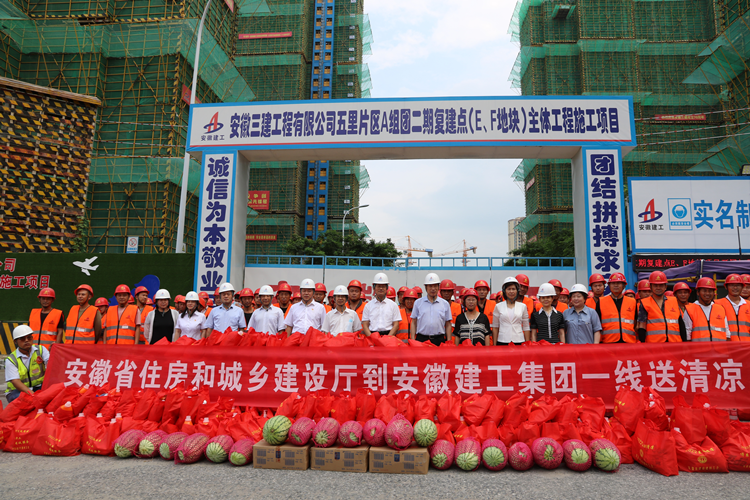 7月29日上午,省住房和城鄉(xiāng)建設(shè)廳黨組成員、副廳長陳揚(yáng)年帶領(lǐng)建設(shè)廳、省建材工會有關(guān)負(fù)責(zé)同志一行深入安徽建工集團(tuán)三建公司五里片區(qū)項目,看望慰問一線職工,開展“送清涼”活動。廬陽區(qū)重點(diǎn)工程建設(shè)管理中心黨組書記、主任桑麗萍,安徽建工控股黨委委員、副總經(jīng)理陳仁虎,建工股份黨委副書記、建工控股工會副主席徐文聯(lián)以及安徽三建黨委書記、董事長何洪春陪同慰問。