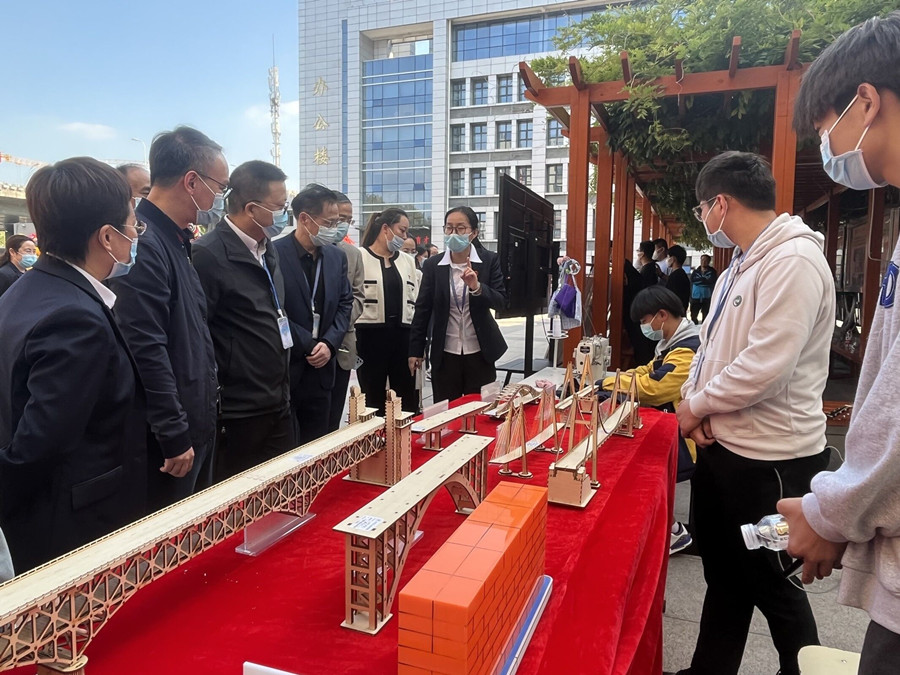 10月14日下午,安徽建工集團(tuán)團(tuán)委書記聶猛與集團(tuán)團(tuán)委委員一行蒞臨社團(tuán)成果展現(xiàn)場(chǎng),學(xué)院領(lǐng)導(dǎo)及各部門負(fù)責(zé)人陪同參觀。學(xué)院魯班廣場(chǎng)上,條幅高掛,音樂環(huán)繞,禮儀列隊(duì)迎賓,龍獅歡騰慶賀,與會(huì)嘉賓們?cè)趦?yōu)秀社團(tuán)老師和學(xué)生的講解、引導(dǎo)下,了解學(xué)院社團(tuán)近幾年的建設(shè)、發(fā)展情況以及取得的成績(jī)。成果展上有模型社、漢服社、烘培社、繪畫社、手工社、機(jī)械加工社等優(yōu)秀作品,有參加各類比賽的獲獎(jiǎng)證書、獎(jiǎng)牌,還有龍獅社、朗誦社、鋼琴社、禮儀社等老師和學(xué)生們的現(xiàn)場(chǎng)才藝展示,讓人目不暇接?,F(xiàn)場(chǎng)嘉賓、領(lǐng)導(dǎo)和老師們對(duì)學(xué)院社團(tuán)百花齊放的狀態(tài),對(duì)學(xué)生積極向上的青春風(fēng)采表達(dá)了高度的贊美。