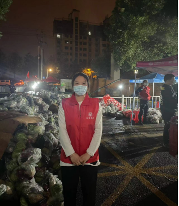 面對(duì)著日益嚴(yán)峻的防疫工作,“暖心物資包”保障了居民日常的生活需求,也為封控在家的居民送上了一份安心。10月26日,韋婷婷的志愿服務(wù)工作之一就是將蔬菜和肉類進(jìn)行著裝卸、分揀和派送。天空冒著細(xì)雨,社區(qū)工作者和志愿者們克服雨天的不便,一直堅(jiān)守崗位,將每份生活物資進(jìn)行分裝、打包,為大家送上這份“日夜兼程”的溫暖。