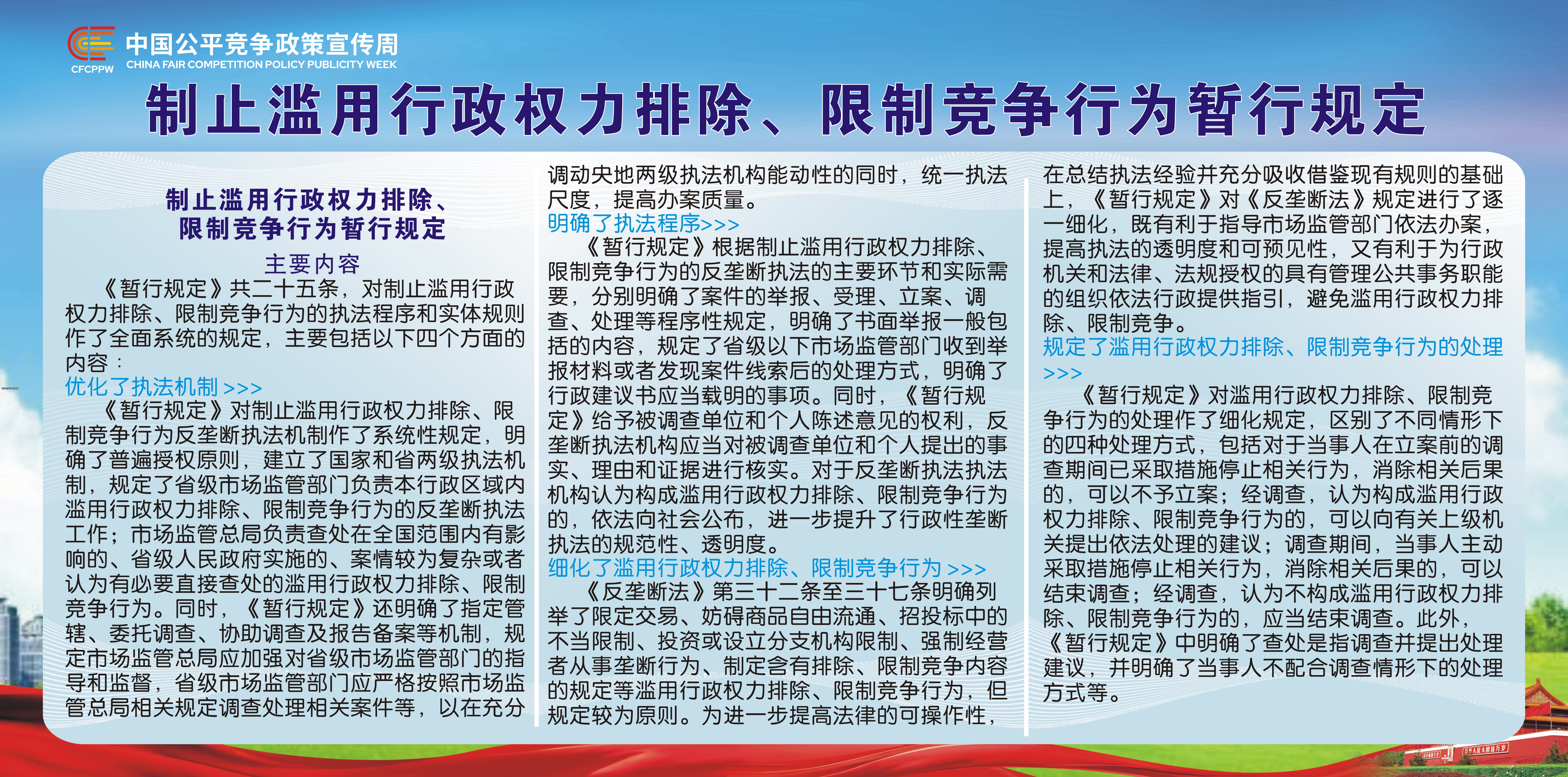 制止濫用行政權(quán)力排除、限制競爭行為暫行規(guī)定