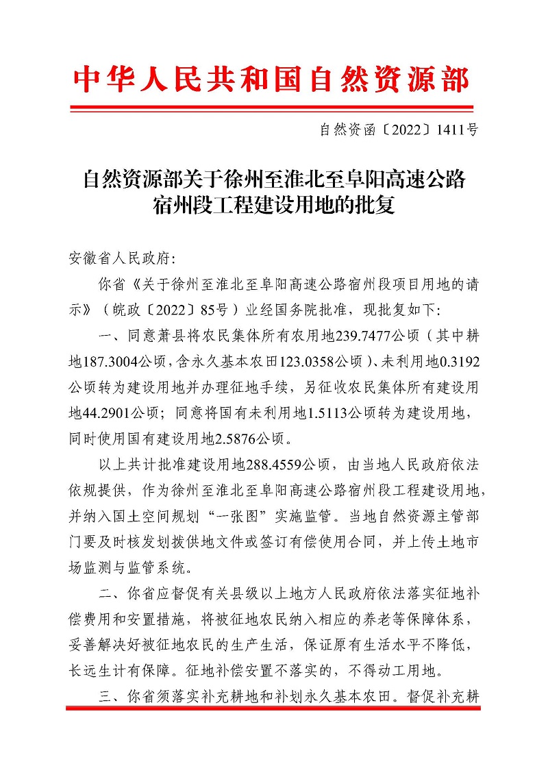 歷時(shí)6個(gè)多月,安徽建工投資建設(shè)的徐淮阜高速公路宿州段項(xiàng)目建設(shè)用地于近日正式獲批!