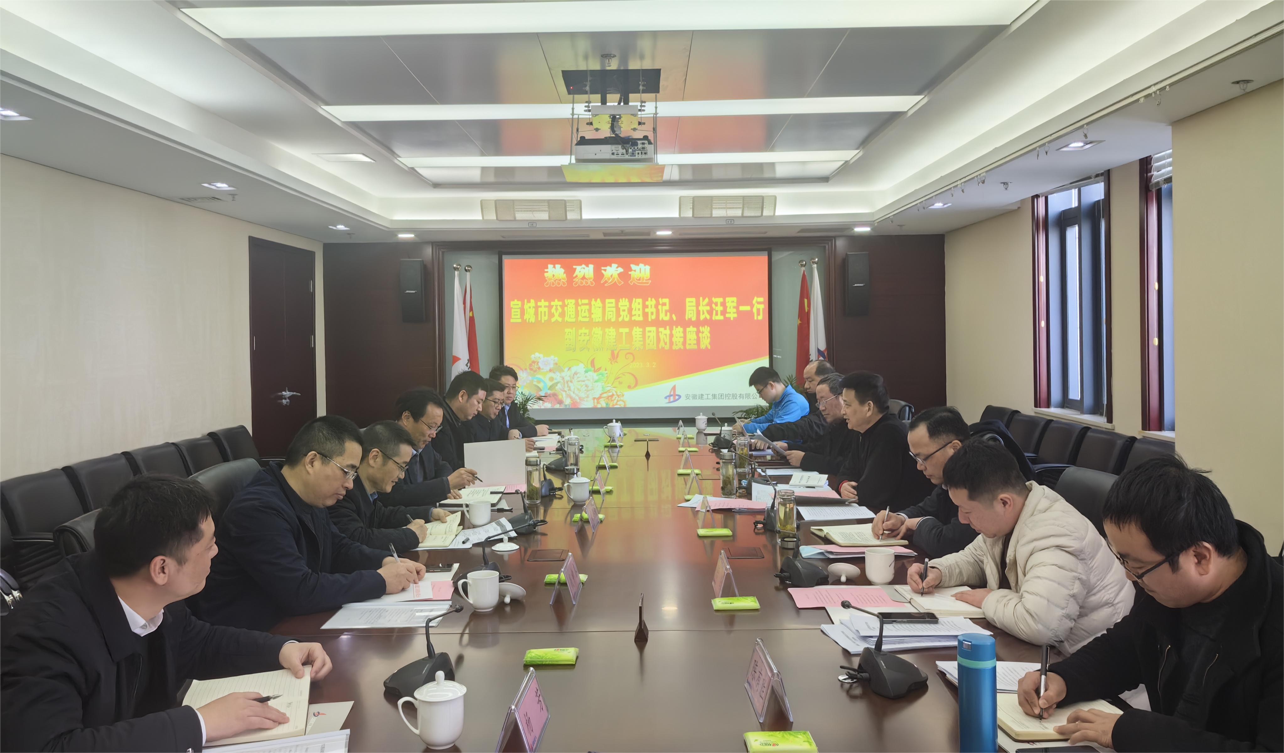 宣城市交通運(yùn)輸局有關(guān)部門同志,集團(tuán)市場開發(fā)部、投資管理部和安建投資、安徽路橋、路橋集團(tuán)、安徽路港等單位負(fù)責(zé)同志參加會談。