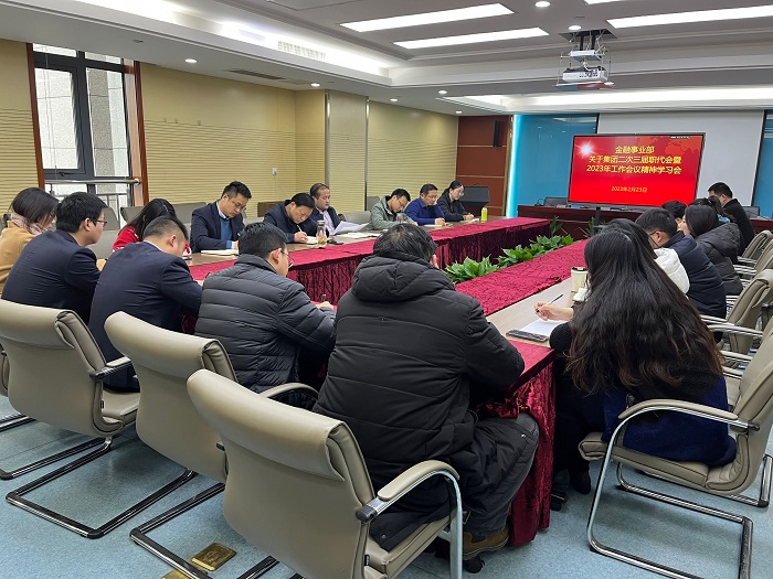 2月23日下午,金融事業(yè)部召開會議,傳達學習建工控股二屆三次職代會暨2023年工作會議精神。黨支部書記、副總經(jīng)理王繼成主持會議。
