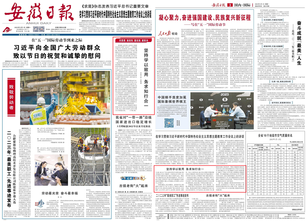 5月1日,安徽日?qǐng)?bào)以《堅(jiān)持學(xué)以致用 務(wù)求知行合一》為題關(guān)注報(bào)道安徽建工集團(tuán)主題教育開(kāi)展情況。以下是報(bào)道部分內(nèi)容: