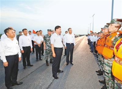 大堤上,習(xí)近平親切看望慰問了在防汛抗洪救災(zāi)斗爭中犧牲同志的家屬、防汛抗洪一線人員、先進(jìn)典型代表和參加抗洪搶險(xiǎn)的部隊(duì)官兵,并向全國奮戰(zhàn)在防汛抗洪救災(zāi)一線的同志們表示誠摯的問候。他強(qiáng)調(diào),今年入汛以來,南北方江河湖泊接連出現(xiàn)超警戒水位險(xiǎn)情。廣大干部群眾和人民解放軍、武警官兵堅(jiān)決響應(yīng)黨和政府號(hào)召,發(fā)揚(yáng)不怕累苦、不怕疲勞、不怕犧牲的精神斗志,堅(jiān)守在防汛抗洪救災(zāi)第一線,涌現(xiàn)了許多先進(jìn)典型和感人事跡,展現(xiàn)了中國人民眾志成城、頑強(qiáng)拼搏、敢于勝利的英雄氣概,書寫了洪水無情人有情的人間大愛。黨和人民感謝你們!