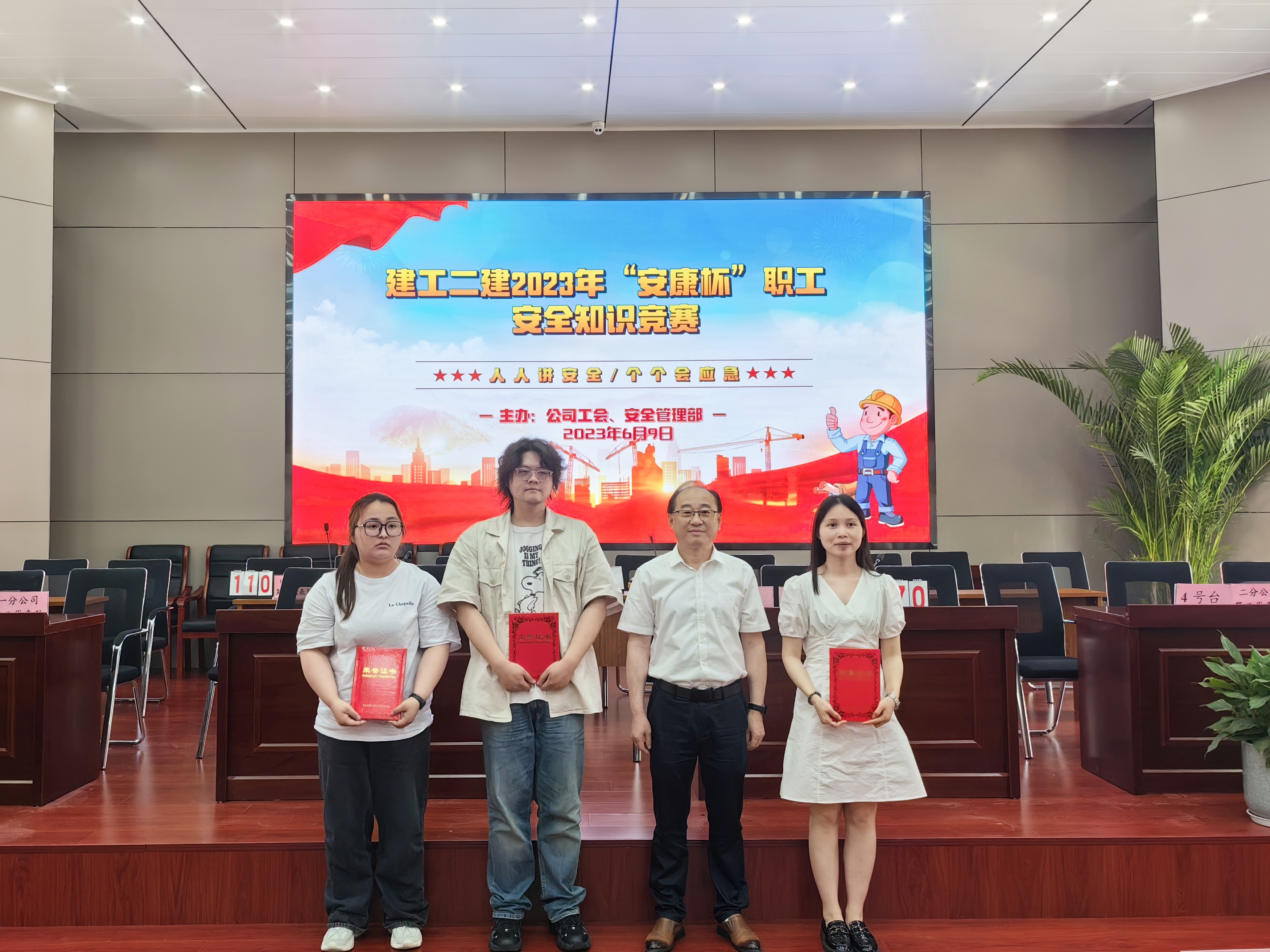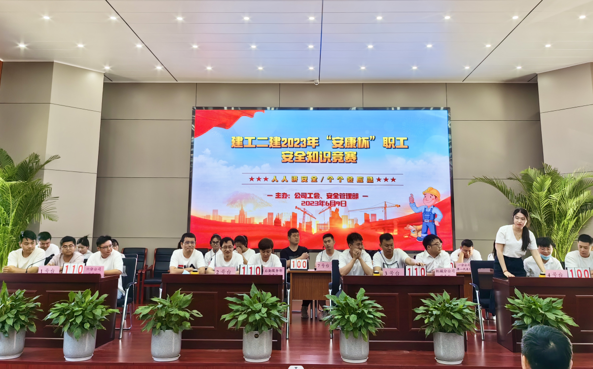 今年六月是第22個(gè)全國“安全生產(chǎn)月”,主題為“人人講安全,個(gè)個(gè)會(huì)應(yīng)急”。6月9日上午,公司工會(huì)牽頭,與安全管理部聯(lián)合舉辦了建工二建2023年“安康杯”職工安全生產(chǎn)知識競賽活動(dòng)。安全知識競賽的開展,旨在通過以賽促學(xué)、以學(xué)促用,大力弘揚(yáng)“生命至上、安全為天”的安全理念,加強(qiáng)安全知識宣傳教育,切實(shí)增強(qiáng)廣大職工安全生產(chǎn)意識和安全管理知識水平。公司黨委副書記、工會(huì)主席王軍,副總經(jīng)理代鵬飛出席活動(dòng)。