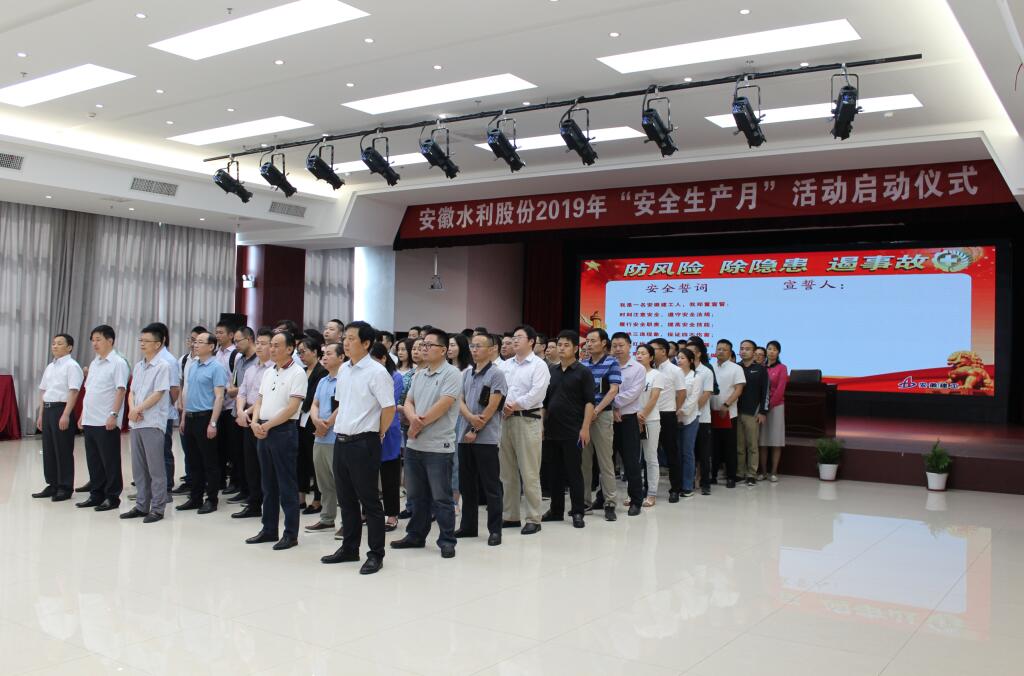 5月31日上午,安徽水利開發(fā)股份有限公司舉行了以“防風(fēng)險(xiǎn)、除隱患、遏事故”為主題的2019年“安全生產(chǎn)月”活動啟動儀式。股份公司安委會主任、總經(jīng)理許克順出席儀式并講話,股份公司安委會副主任、副總經(jīng)理孫學(xué)軍主持儀式并領(lǐng)誓,股份公司總工程師楊斌、股份機(jī)關(guān)全體員工、安建建設(shè)、安建海外及安建財(cái)務(wù)相關(guān)人員參加了啟動儀式。