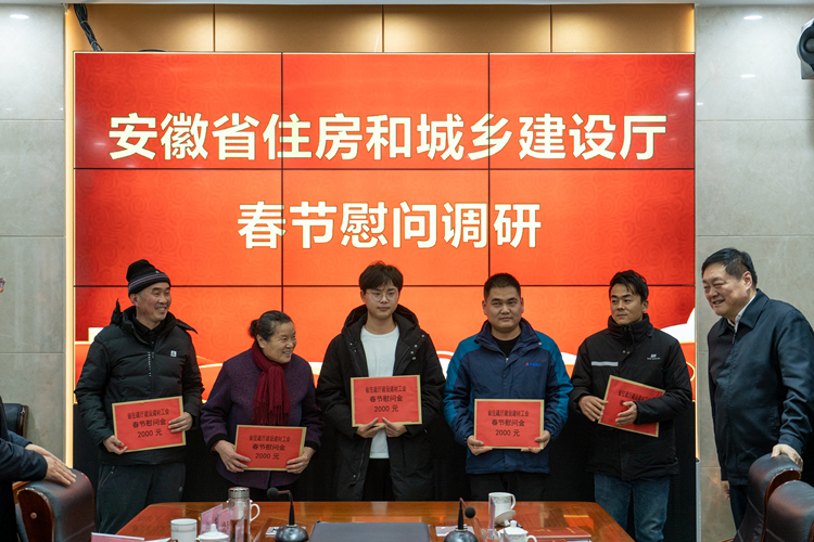 在新春佳節(jié)即將到來之際,1月28日下午,省住建廳黨組書記、廳長賀懋燮一行來到安徽建工集團所屬安徽三建公司走訪慰問困難職工并召開座談會,送來廳黨組的關(guān)心關(guān)懷。廳黨組成員、副廳長吳桂和,廳黨組成員、副廳長陳揚年,廳黨組成員、總工方廷勇,建工控股黨委副書記、總經(jīng)理劉家靜,黨委委員、紀委書記、監(jiān)察專員王汪苗陪同慰問。
