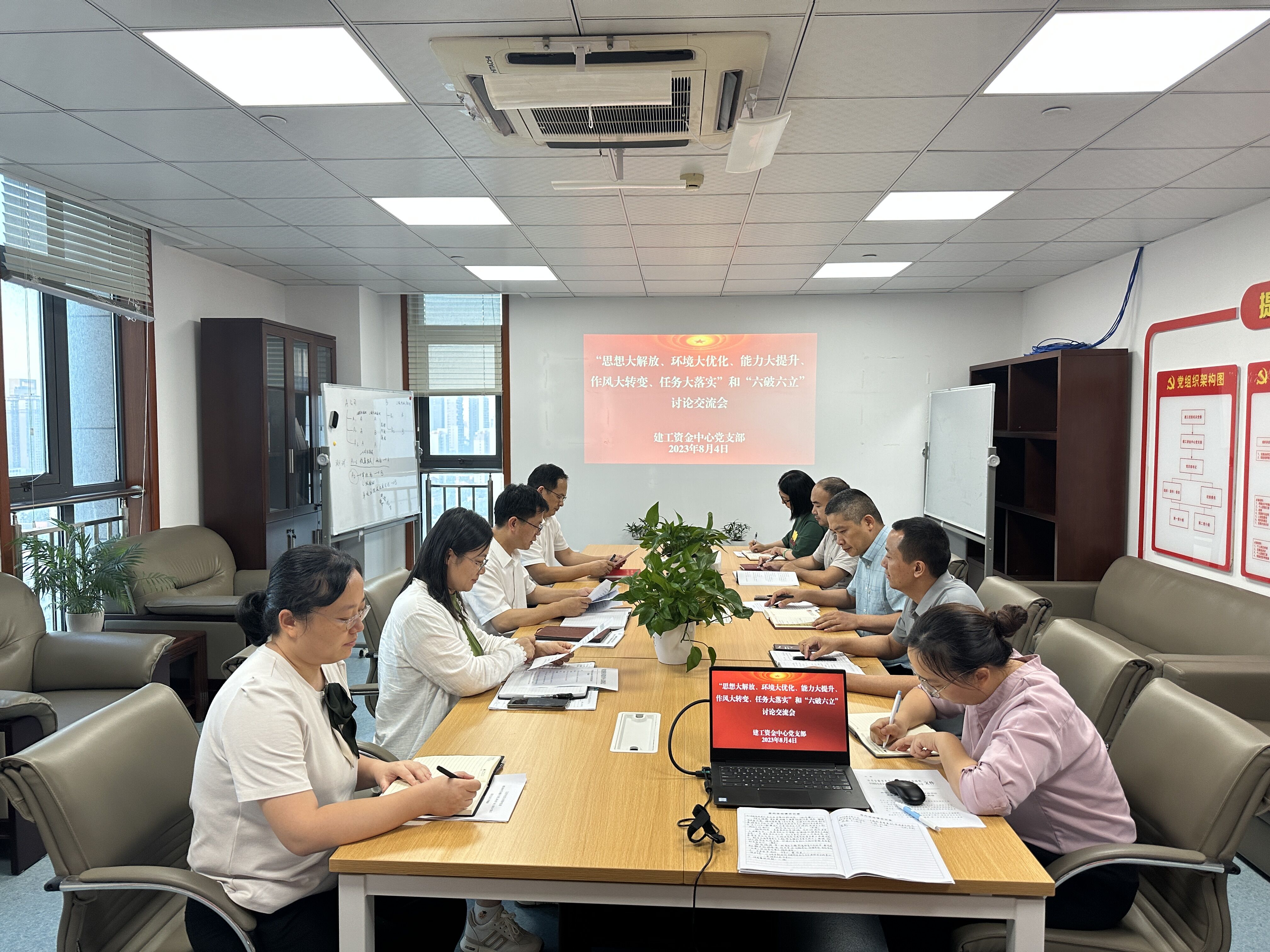 8月4日,建工資金中心黨支部組織召開“思想大解放、環(huán)境大優(yōu)化、能力大提升、作風大轉(zhuǎn)變、任務(wù)大落實”和“六破六立”研討會暨8月份黨日活動,活動由黨支部書記、總經(jīng)理劉強主持。