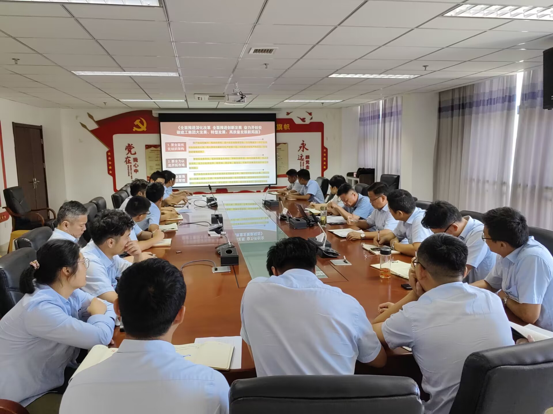 公司領(lǐng)導(dǎo)班子從深刻認(rèn)識(shí)開(kāi)展主題教育的重大意義、牢牢把握主題教育總要求、推動(dòng)主題教育走深做實(shí)及深入貫徹落實(shí)集團(tuán)全面深化改革推動(dòng)創(chuàng)新發(fā)展動(dòng)員部署會(huì)精神等方面進(jìn)行了講解,并就抓好主題教育提出具體要求,一是要切實(shí)提高政治站位,把理論學(xué)習(xí)、調(diào)查研究、推動(dòng)發(fā)展和檢視整改貫通起來(lái)、有機(jī)融合、一體推進(jìn),實(shí)現(xiàn)“規(guī)定動(dòng)作”不走樣、“自選動(dòng)作”有特色,推動(dòng)主題教育不斷走深走實(shí)。二是充分認(rèn)識(shí)深化改革的緊迫性和必要性,牢記省委書(shū)記韓俊提出的五大方面及“六破六立”要求,全面貫徹落實(shí)集團(tuán)黨委的決策部署;三是要攻堅(jiān)克難、砥礪奮進(jìn),以成本管理為核心,提升項(xiàng)目創(chuàng)效能力,推進(jìn)竣工項(xiàng)目決算力度,做好公司債權(quán)回收工作,助力公司開(kāi)創(chuàng)高質(zhì)量發(fā)展新局面;四是要緊緊圍繞集團(tuán)戰(zhàn)略部署和工作安排,進(jìn)一步樹(shù)立為集團(tuán)大發(fā)展、轉(zhuǎn)型發(fā)展、高質(zhì)量發(fā)展作貢獻(xiàn)的責(zé)任和擔(dān)當(dāng)意識(shí)。