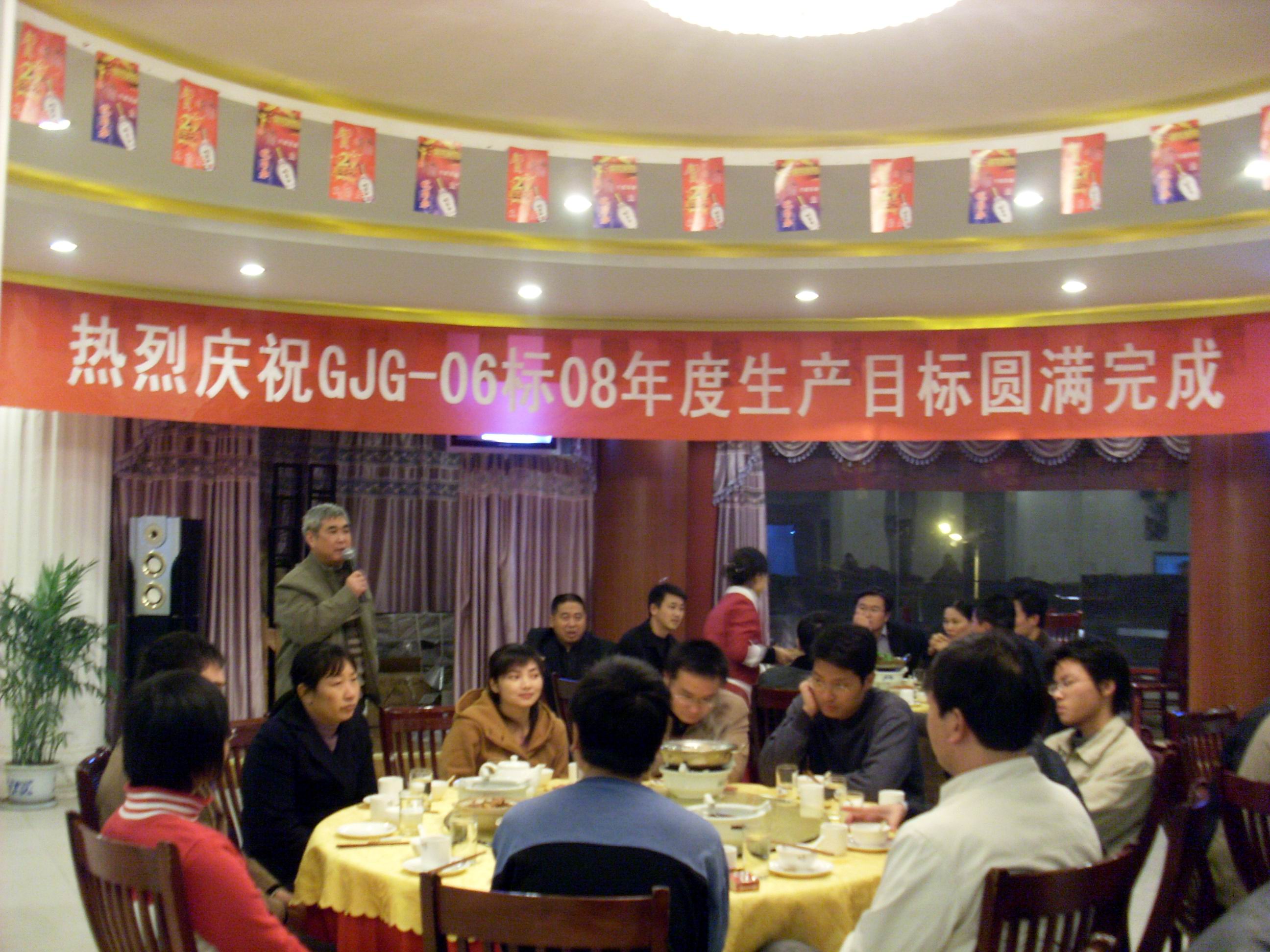 晚上,項(xiàng)目部安排慶功晚宴,盛情邀請(qǐng)監(jiān)理組所有成員,迎接奮戰(zhàn)了十天九夜凱旋歸來(lái)的“戰(zhàn)士”們,公司也派員來(lái)到工地與大家歡聚一堂。