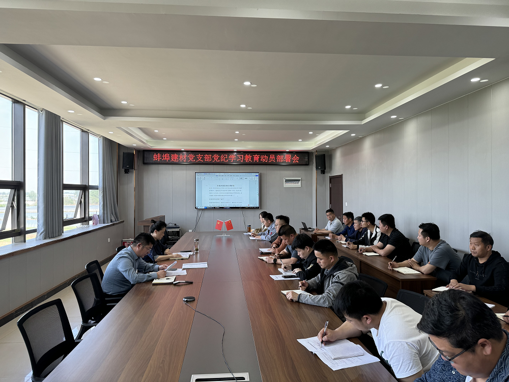 蚌埠建材黨支部召開(kāi)黨紀(jì)學(xué)習(xí)教育動(dòng)員部署會(huì),認(rèn)真學(xué)習(xí)《習(xí)近平總書(shū)記關(guān)于加強(qiáng)黨的紀(jì)律建設(shè)相關(guān)論述》,傳達(dá)學(xué)習(xí)建工集團(tuán)《關(guān)于開(kāi)展黨紀(jì)學(xué)習(xí)教育的通知》《蚌埠建材黨支部關(guān)于黨紀(jì)學(xué)習(xí)教育的學(xué)習(xí)計(jì)劃》。