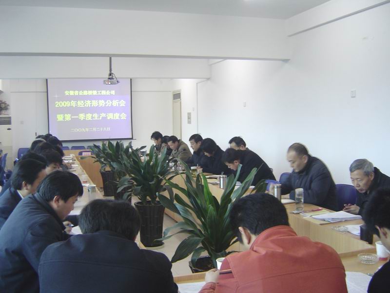 2月28日,安徽省路橋公司在四樓會議室召開2009年經(jīng)濟(jì)形勢分析會暨第一季度生產(chǎn)調(diào)度會。公司領(lǐng)導(dǎo)班子成員、直屬(生產(chǎn))單位負(fù)責(zé)人、機關(guān)部門負(fù)責(zé)人、直屬項目部經(jīng)理、總工和財務(wù)負(fù)責(zé)人共計50余人參加了會議。會議由副總經(jīng)理盛明宏主持。