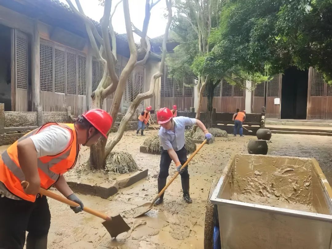 6月21日,臨時組建的建工交航皖南分公司應急搶險隊立刻奔赴受災最前線,全力配合當?shù)卣_展應急搶險工作。近60名員工,臨時調配10余臺人力勞動車,3臺灑水沖洗設備,經過與當?shù)卣芮新?lián)系,緊急前往位于黃山市徽州區(qū)呈坎的省級文物保護景區(qū)寶綸閣支援抗洪清淤工作。寶綸閣文物景區(qū)遍布眾多明代古建筑,居民房屋多為老宅;搶險隊員們動作迅速,注重細節(jié),連續(xù)奮戰(zhàn)5小時后,景區(qū)受災范圍內的淤泥、雜物都已清運完畢,最大限度地降低了洪澇災害對文物景區(qū)環(huán)境和居民生產生活的影響。