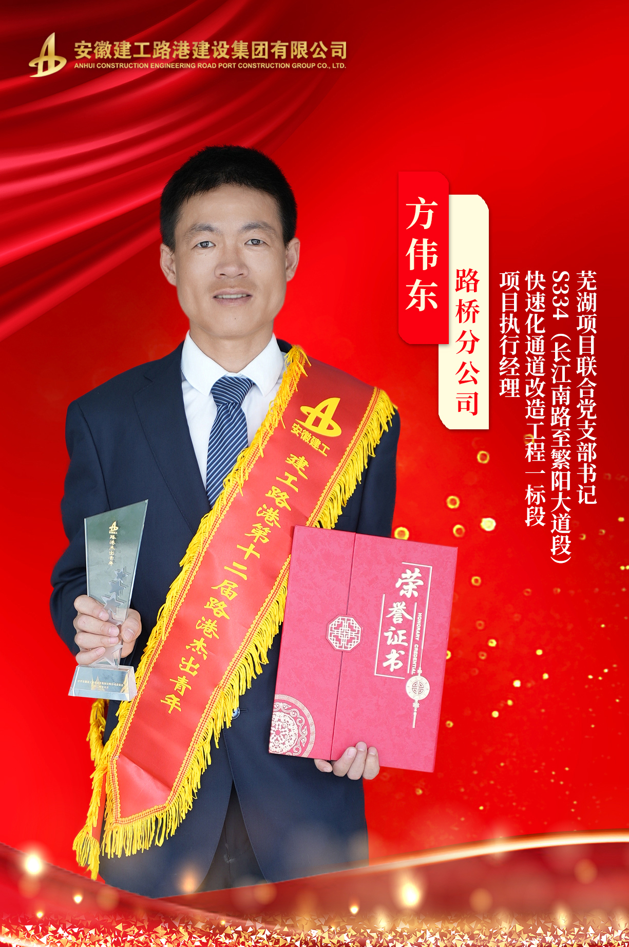 方偉東,男,漢族,黨員,本科學(xué)歷,工程師,一級(jí)建造師,現(xiàn)任建工路港路橋分公司蕪湖項(xiàng)目聯(lián)合黨支部書(shū)記,S334(長(zhǎng)江南路至繁陽(yáng)大道段)快速化通道改造工程一標(biāo)段項(xiàng)目負(fù)責(zé)人。