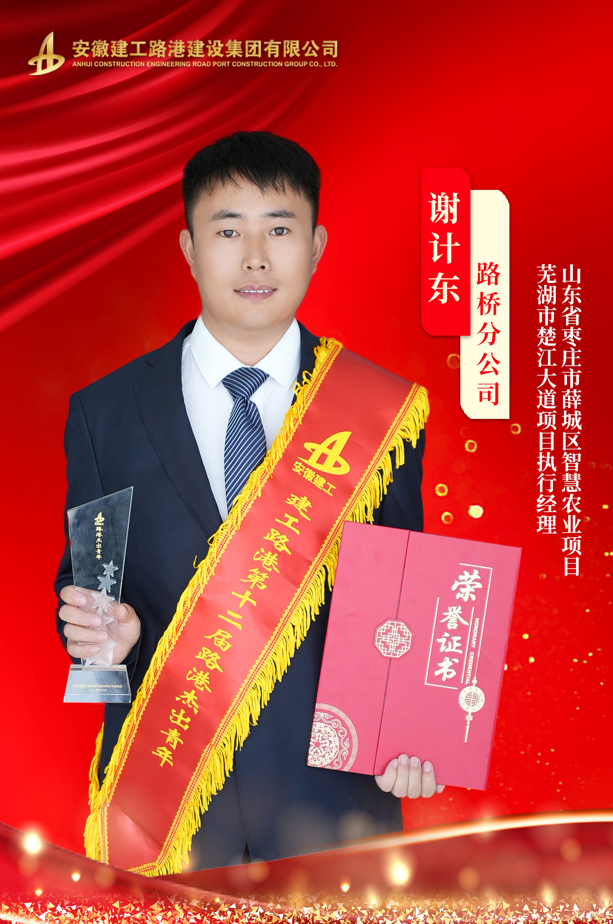 謝計東,男,漢族,黨員,本科學(xué)歷,工程師,一級建造師,現(xiàn)任建工路港路橋分公司山東省棗莊市薛城區(qū)智慧農(nóng)業(yè)項目、蕪湖市楚江大道項目負(fù)責(zé)人。