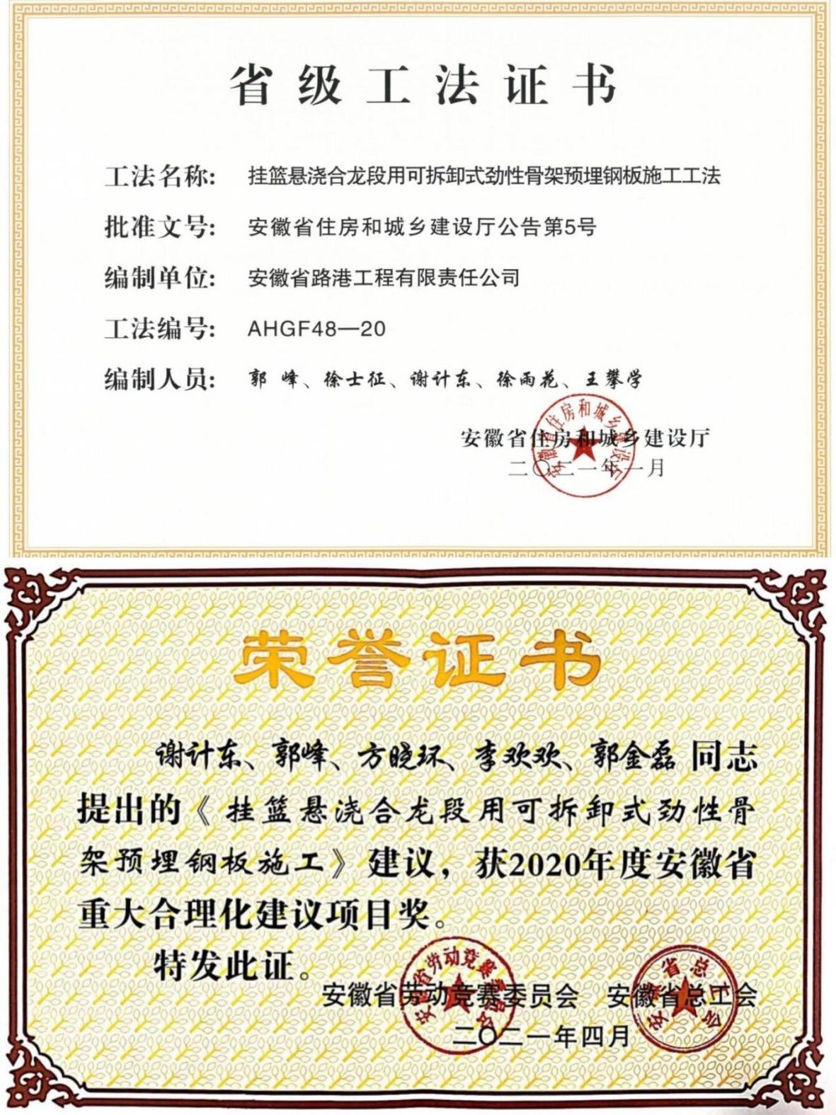 該同志先后參與了S316巢湖段改建工程、銅陵路高架橋、蕪湖市中山橋等多個項目施工。期間數(shù)次獲得集團和公司先進(生產(chǎn))工作者、優(yōu)秀共產(chǎn)黨員等榮譽稱號,榮獲安徽省重大合理化建議及省級工法各1項。