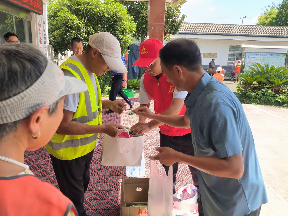 活動(dòng)現(xiàn)場(chǎng),項(xiàng)目團(tuán)員青年們對(duì)堅(jiān)守一線的環(huán)衛(wèi)工人送上花露水、西瓜、礦泉水、防暑藥品及生活必需品,并囑咐他們要注意防暑降溫,保重身體。