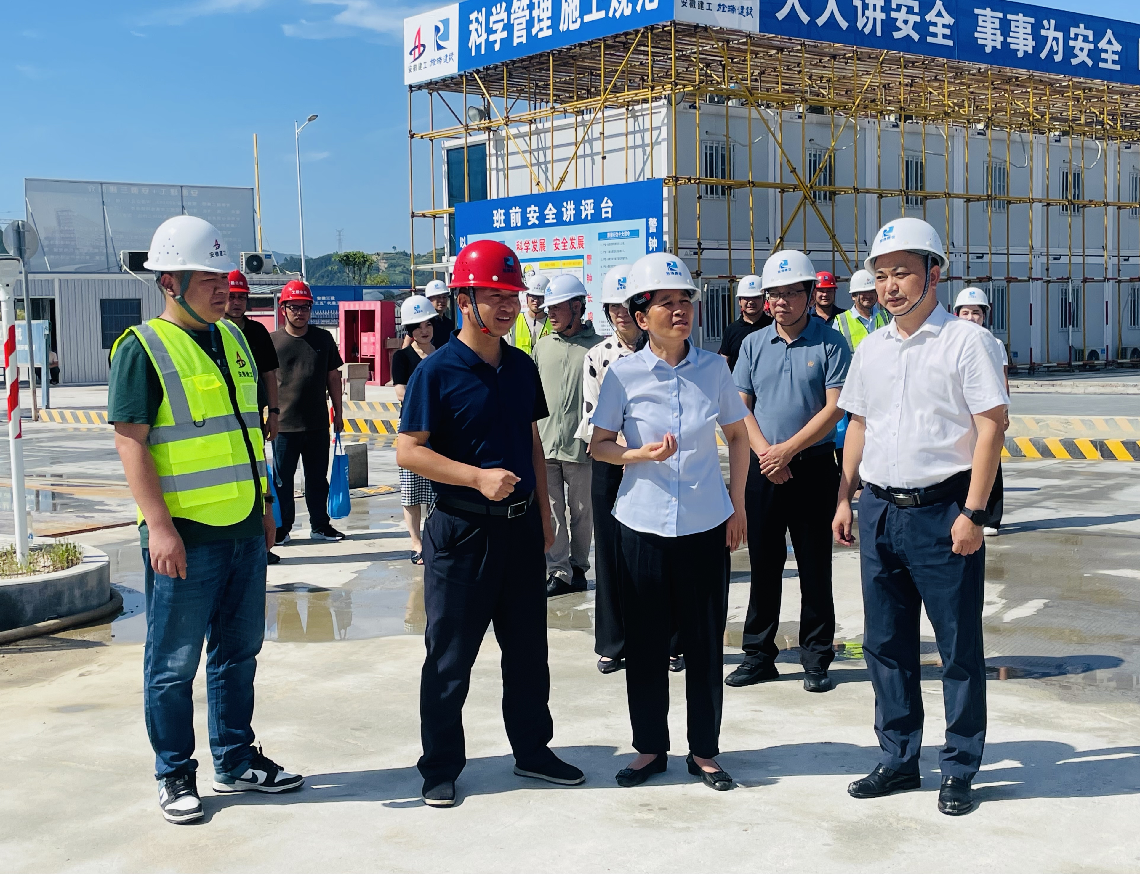 7月24日,旌德縣委書(shū)記吳忠梅一行到建工三建承建的旌德縣承接長(zhǎng)三角一體化產(chǎn)業(yè)園建設(shè)項(xiàng)目(二期)開(kāi)展“送清涼”慰問(wèn)活動(dòng),為奮戰(zhàn)在高溫下的建設(shè)者們送去關(guān)懷。旌德經(jīng)開(kāi)區(qū)黨工委書(shū)記、管委會(huì)主任傅世恩等參加。