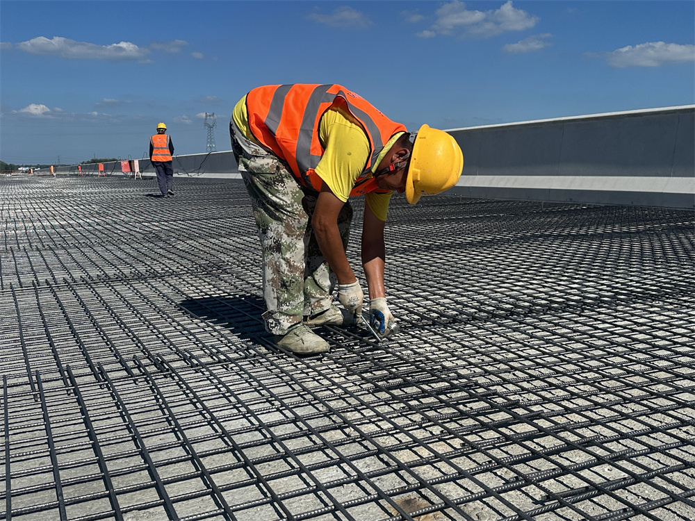 同樣烈日炎炎的五蒙高速05標(biāo)項(xiàng)目施工現(xiàn)場(chǎng),工人們不懼“烤”驗(yàn),在各條戰(zhàn)線上克服天氣不利影響,以良好的精神狀態(tài)投入到工作中。他們心無旁騖,在刺眼的陽(yáng)光下和鋼筋水泥“較勁”,始終堅(jiān)守在各自的工作崗位上,以?shī)^力拼搏的實(shí)際行動(dòng),戰(zhàn)高溫、斗酷暑、保安全、促生產(chǎn),保質(zhì)保量完成下發(fā)的施工節(jié)點(diǎn)任務(wù)。