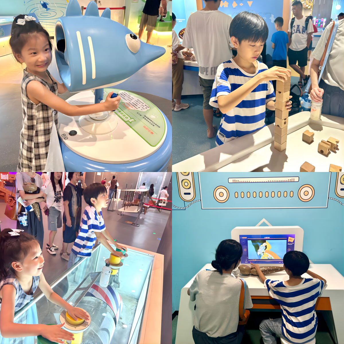 離開(kāi)項(xiàng)目部,“小候鳥”們走進(jìn)了安徽省科技館,先后參觀了“科學(xué)征程”“科技強(qiáng)國(guó)”“天地探秘”“量子探微”等主題展區(qū),精美的展品、詳實(shí)的講解、沉浸式的交互體驗(yàn),讓孩子們?cè)诖箫栄鄹5耐瑫r(shí)領(lǐng)略了科技的魅力,過(guò)足了一把“科技癮”。