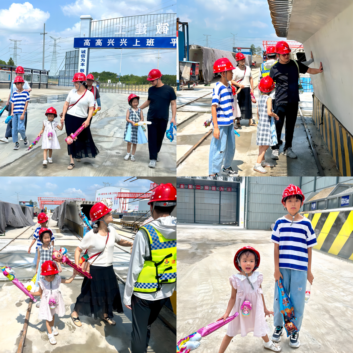 在父母的帶領(lǐng)下,“小候鳥”們戴上安全帽走進(jìn)了“工地大課堂”,實(shí)地參觀了S18寧合高速04標(biāo)項(xiàng)目施工現(xiàn)場(chǎng)、辦公區(qū)與生活區(qū),“零距離”感受了父母的工作環(huán)境,深刻認(rèn)識(shí)到了工作的艱辛不易,并為他們?cè)痪€、艱苦奮斗而感到驕傲與自豪。