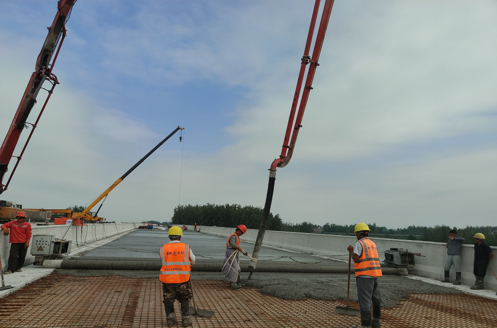 8月31日下午4點(diǎn),隨著最后一車混凝土澆筑完畢,安徽水利合周高速潁臨段路基05標(biāo)谷河二橋橋面鋪裝混凝土全部完成,標(biāo)志著合周高速潁臨段路基05標(biāo)谷河二橋橋梁工程主體工程全部結(jié)束,為下一步路面施工單位進(jìn)場施工創(chuàng)造了條件。