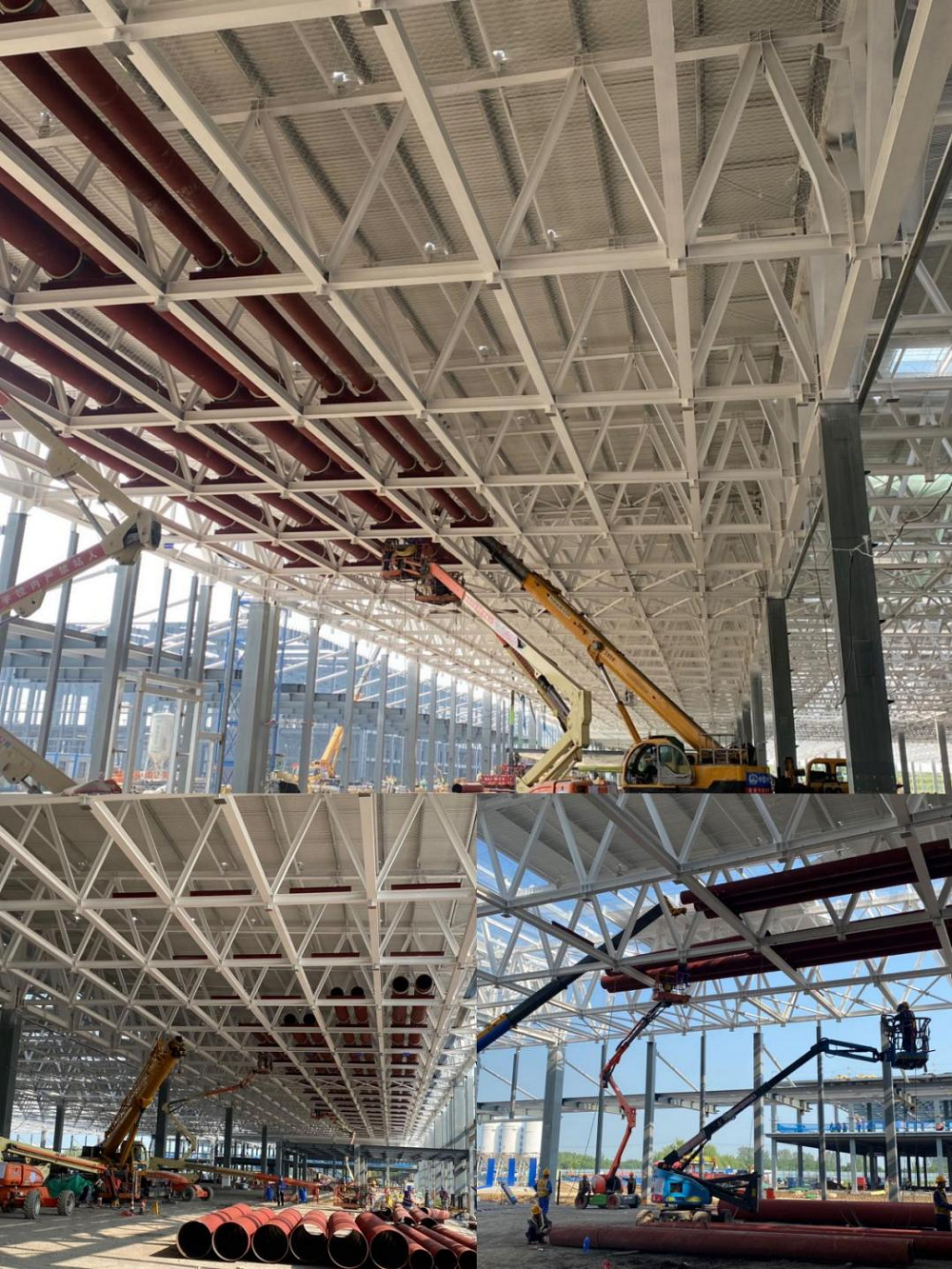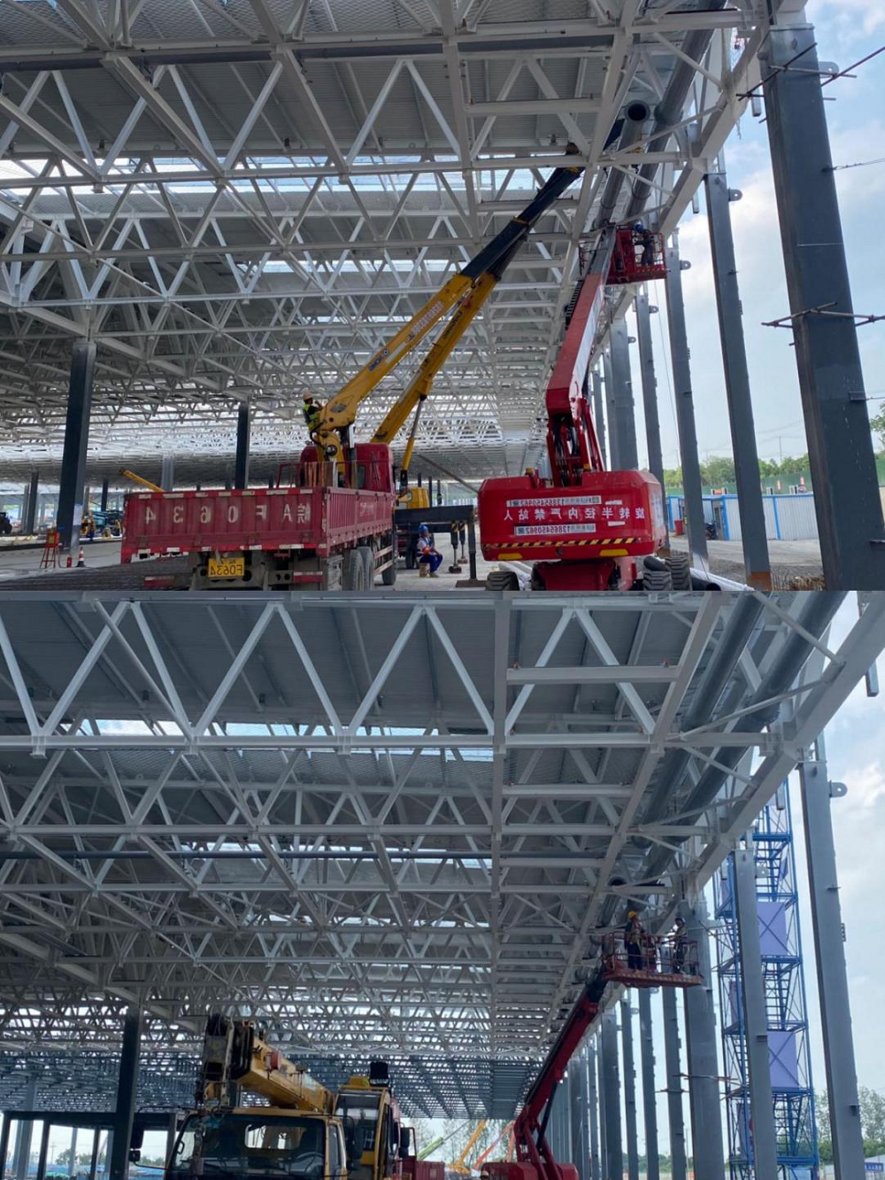 該項(xiàng)目工期緊、任務(wù)重,項(xiàng)目部開足馬力搶抓節(jié)點(diǎn),充分合理調(diào)配人、材、機(jī)及資金等資源。為搶抓晴好天氣,錯(cuò)峰高溫時(shí)段,管理人員靠前指揮,作業(yè)人員并聯(lián)推進(jìn)、多點(diǎn)開花,加班加點(diǎn)、挑燈夜戰(zhàn)。在確保安全質(zhì)量的前提下,優(yōu)化施工方案,緊跟鋼結(jié)構(gòu)及土建單位的施工進(jìn)度“見縫插針”,全力推進(jìn)本項(xiàng)目的建設(shè)進(jìn)度。