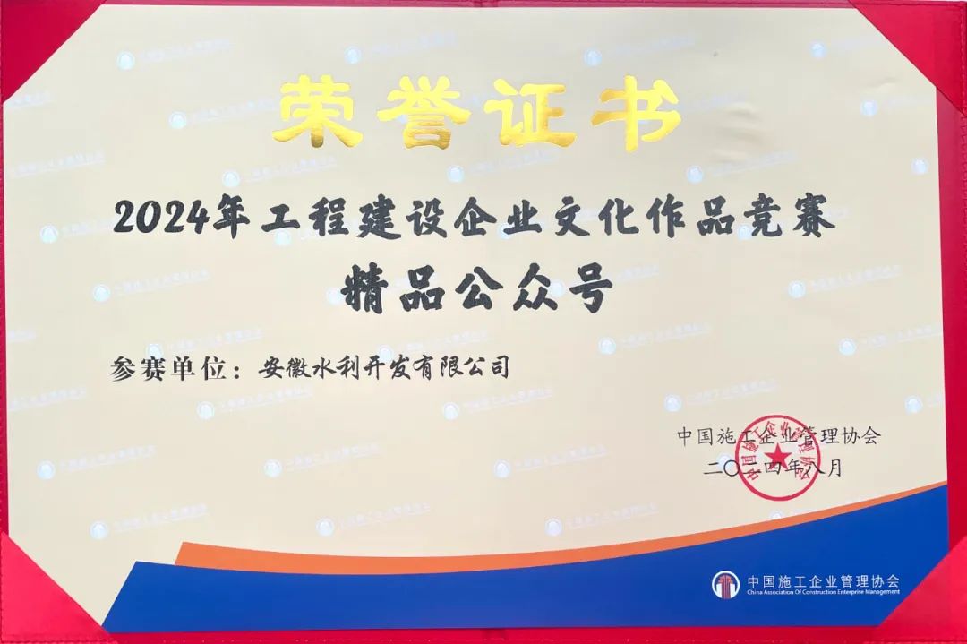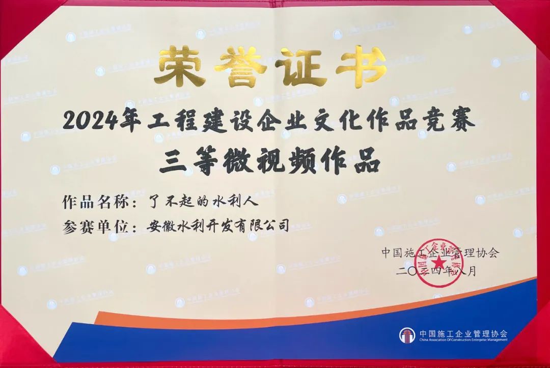 9月4日至6日,中國(guó)施工企業(yè)管理協(xié)會(huì)在南京召開2024年工程建設(shè)企業(yè)文化建設(shè)成果交流會(huì),安徽水利在公眾號(hào)、網(wǎng)站、企業(yè)文化案例、微視頻、書法多個(gè)類別中,共入圍7項(xiàng)作品,2人獲評(píng)企業(yè)文化專家,1人獲評(píng)優(yōu)秀通訊員。