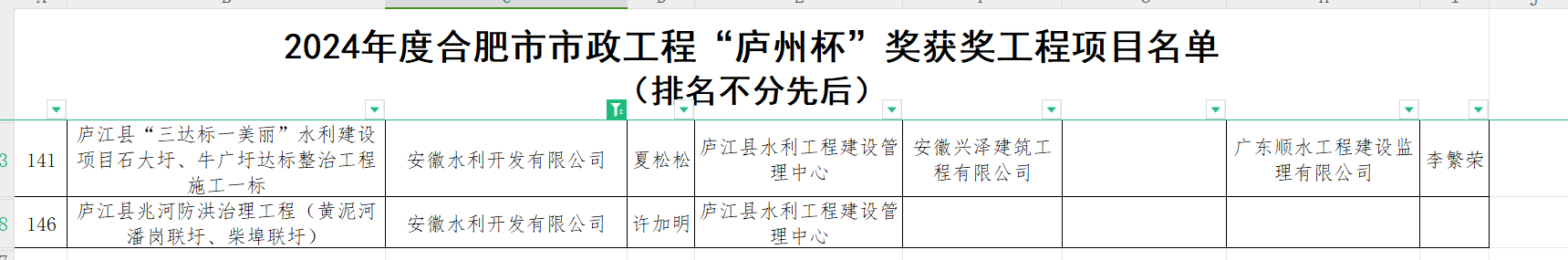 近日,合肥市市政工程協(xié)會(huì)公布了2024年度合肥市市政工程“廬州杯”獲獎(jiǎng)名單,安徽水利承建的廬江縣“三達(dá)標(biāo)一美麗”水利建設(shè)項(xiàng)目石大圩、牛廣圩達(dá)標(biāo)整治工程施工一標(biāo)和廬江縣兆河防洪治理工程(黃泥河潘崗聯(lián)圩、柴埠聯(lián)圩)斬獲殊榮。