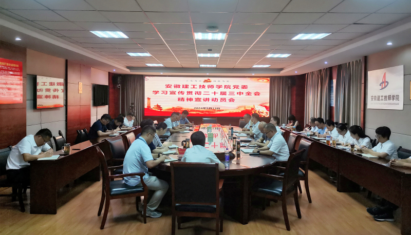 會議重點宣貫集團(tuán)黨委學(xué)習(xí)貫徹黨的二十屆三中全會精神宣講報告會精神;傳達(dá)《安徽建工技師學(xué)院黨委關(guān)于認(rèn)真學(xué)習(xí)貫徹黨的二十屆三中全會精神的通知》《安徽建工技師學(xué)院黨委學(xué)習(xí)貫徹黨的二十屆三中全會精神宣講工作方案》文件要求。