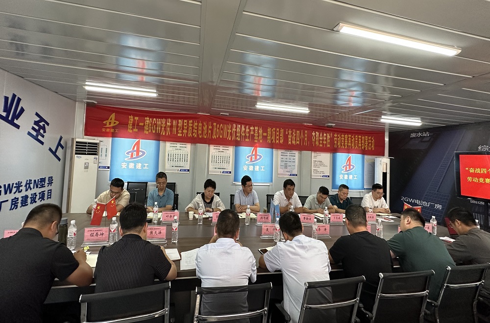 9月10日上午,公司赴年產(chǎn)6GW光伏N型異質(zhì)結(jié)電池片及6GW光伏組件生產(chǎn)基地廠房建設(shè)項(xiàng)目召開“奮戰(zhàn)四個(gè)月,奪取全年勝”勞動(dòng)競賽再動(dòng)員再部署會(huì)議。公司黨委副書記、副總經(jīng)理張為政出席會(huì)議并講話,副總經(jīng)理費(fèi)勤波主持會(huì)議。