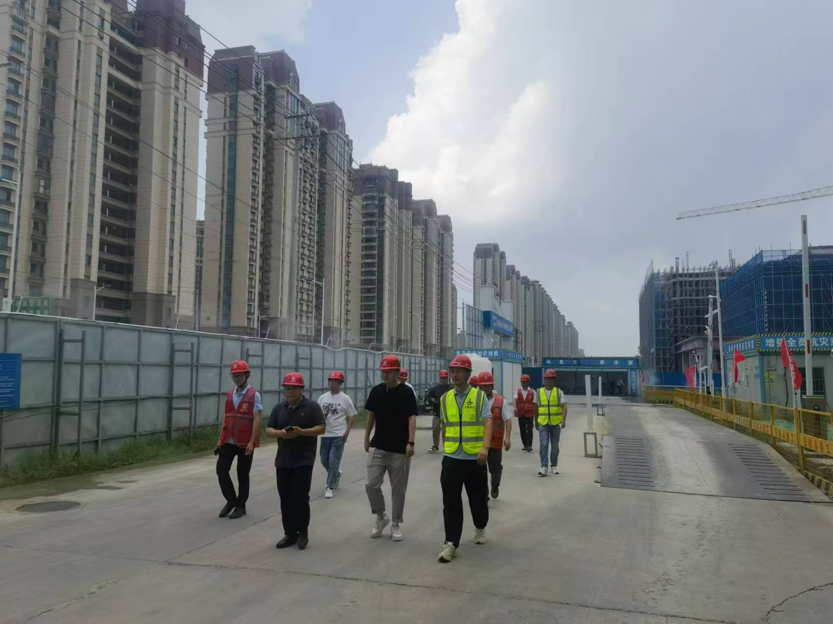 驗收組一行走進項目現(xiàn)場,實地查看了腳手架搭設、腳手架工程、臨時用電、材料堆放和揚塵污染防治等情況,聽取了項目負責同志關于工程概況、安全管理及文明施工情況的匯報,仔細查閱了項目危大工程施工方案、安全技術交底等安全管理記錄。通過現(xiàn)場檢查、聽取匯報和查閱資料,驗收組對壽縣一中新橋校區(qū)項目標準化建設和整體安全生產管理工作給予充分肯定,一致同意通過“淮南市建筑安全生產標準化示范工地”驗收。