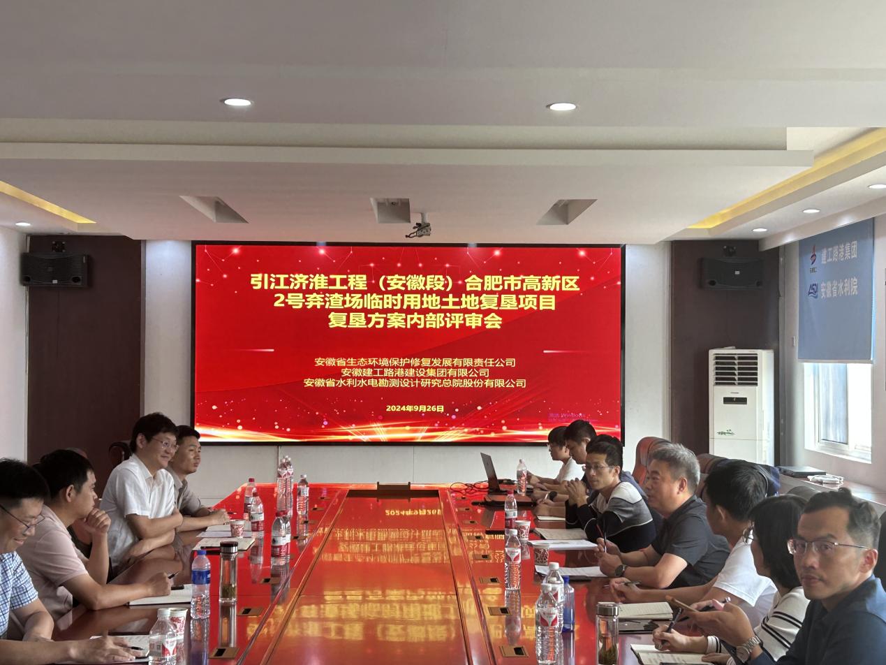 9月26日下午,建工路港引江濟(jì)淮工程(安徽段)合肥市高新區(qū)2號(hào)棄渣場(chǎng)臨時(shí)用地土地復(fù)墾項(xiàng)目在項(xiàng)目部會(huì)議室組織召開(kāi)了復(fù)墾方案內(nèi)部評(píng)審會(huì)。公司黨委委員、副總經(jīng)理、總工程師蘇穎到會(huì)指導(dǎo),省生態(tài)修復(fù)公司、建工路港水利水電分公司、省水利總院、路港建投等相關(guān)負(fù)責(zé)人參會(huì)。