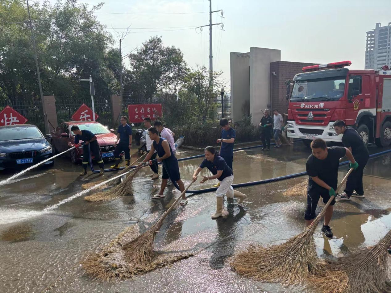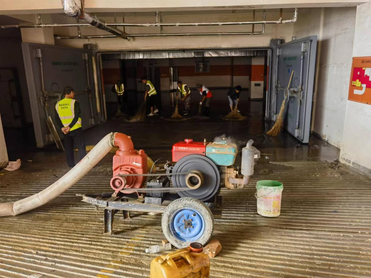 面對嚴峻的災害天氣,建工交航水建分公司S239蕭楊路提升項目應蕭縣縣政府號召,積極主動參與蕭縣縣城水災排澇工作中,配合應急救援隊疏散群眾、設立警戒線、執(zhí)勤預警點、執(zhí)勤值守、水位觀測。在排澇水災關鍵時刻,幫助受災群眾做好沖洗街道、清理垃圾,分發(fā)物資。蕭縣副縣長吳群對交航公司現場排澇工作表示肯定,用實際行動彰顯國企責任擔當。