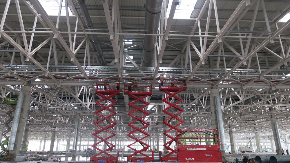 在建工安裝合肥經(jīng)開(kāi)區(qū)臨湖智能制造產(chǎn)業(yè)園項(xiàng)目現(xiàn)場(chǎng),項(xiàng)目部管理人員及水電班組、通風(fēng)班組、消防班組、虹吸雨水班組施工人員夜以繼日加班加點(diǎn)搶抓進(jìn)度。30名項(xiàng)目管理人員,226名施工人員,96輛登高機(jī)械,采取“白加黑” 、“5+2”模式施工作業(yè),確保各區(qū)域各專(zhuān)業(yè)施工生產(chǎn)穩(wěn)步推進(jìn)。 目前正在進(jìn)行車(chē)間一通風(fēng)系統(tǒng)、雨水系統(tǒng)、消防系統(tǒng),壓縮空氣與循環(huán)水系統(tǒng)等安裝作業(yè),站房一同步開(kāi)展管線(xiàn)預(yù)埋與預(yù)制工作。本周已完成車(chē)間一風(fēng)管安裝約4200平方米,雨水管道安裝約1100米,消防管道安裝約590米,橋架安裝約600米。