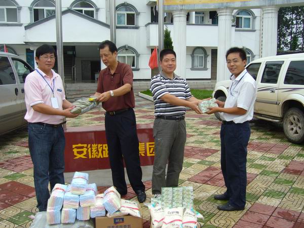 8月7日上午,建工集團(tuán)工會(huì)副主席李鵬飛一行在省路橋集團(tuán)副總經(jīng)理朱曉奎等陪同下到該公司S311滁定路03標(biāo)慰問(wèn)項(xiàng)目部全體人員,并給他們送去綠豆、白糖、香皂、毛巾等防暑降溫物品。