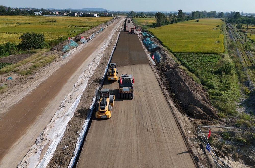 在徐淮阜項目現(xiàn)場,處處可見熱火朝天的大干場面,建設(shè)者們堅守崗位,順利完成了路面瀝青試驗段鋪筑任務(wù),用實績“筑”福偉大祖國繁榮昌盛。