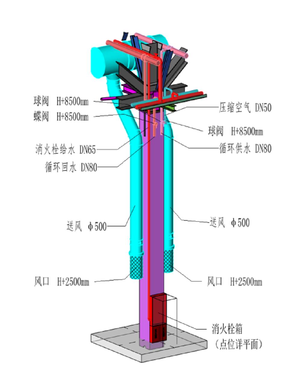 在項目初期,BIM團隊就深入?yún)⑴c,對廠區(qū)內部的管線走向、設備布局進行模擬和深化。通過識別沖突點、優(yōu)化布置,避免現(xiàn)場返工;提前深化機電支吊架方案,確保大管徑支吊架與鋼構同步安裝;針對復雜節(jié)點建立虛擬樣板模型。此外,基于BIM模型合理安排施工工序,提前預判問題,避免工序干涉。