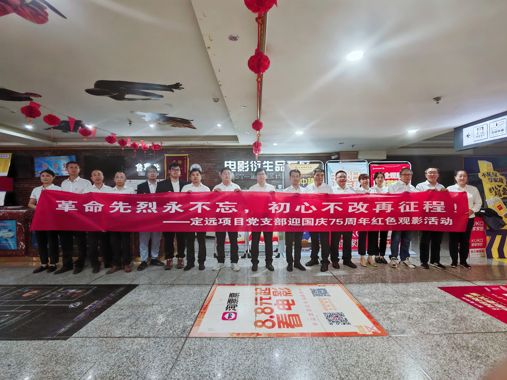 定遠項目黨支部組織開展了活動主題為“革命先烈永不忘 初心不改再征程”——迎國慶75周年紅色觀影活動,組織黨員干部職工觀看影片《志愿軍:存亡之戰(zhàn)》。觀影結束后,大家紛紛表示要學習志愿軍戰(zhàn)士們的精神,堅定信心、勇往直前,面對問題困難,要發(fā)揚釘釘子精神,迎難而上,做好本職工作,為項目完成全年任務目標,為長城置業(yè)轉型發(fā)展、高質量發(fā)展貢獻自己的力量。