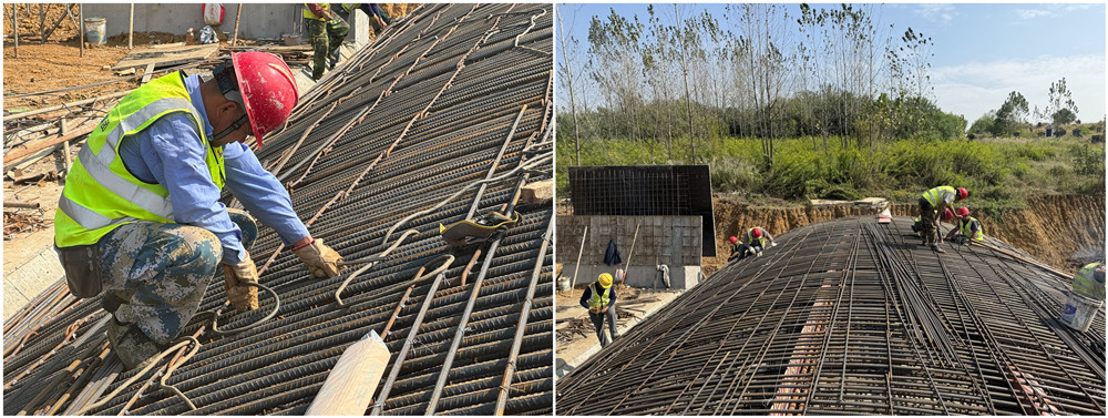 鋼筋是建筑的骨架、脊梁,起到支撐作用,就像人的骨骼一樣,綁扎過(guò)程中不能有絲毫馬虎。現(xiàn)場(chǎng)工人和技術(shù)人員頭戴安全帽,身穿反光背心,加班加點(diǎn),巧手扎起“鋼筋鐵骨”,為拱圈澆筑做好充分準(zhǔn)備,保證建筑骨架安全支起,全力以赴加快施工進(jìn)度,高質(zhì)高效快速推進(jìn)項(xiàng)目建設(shè)。