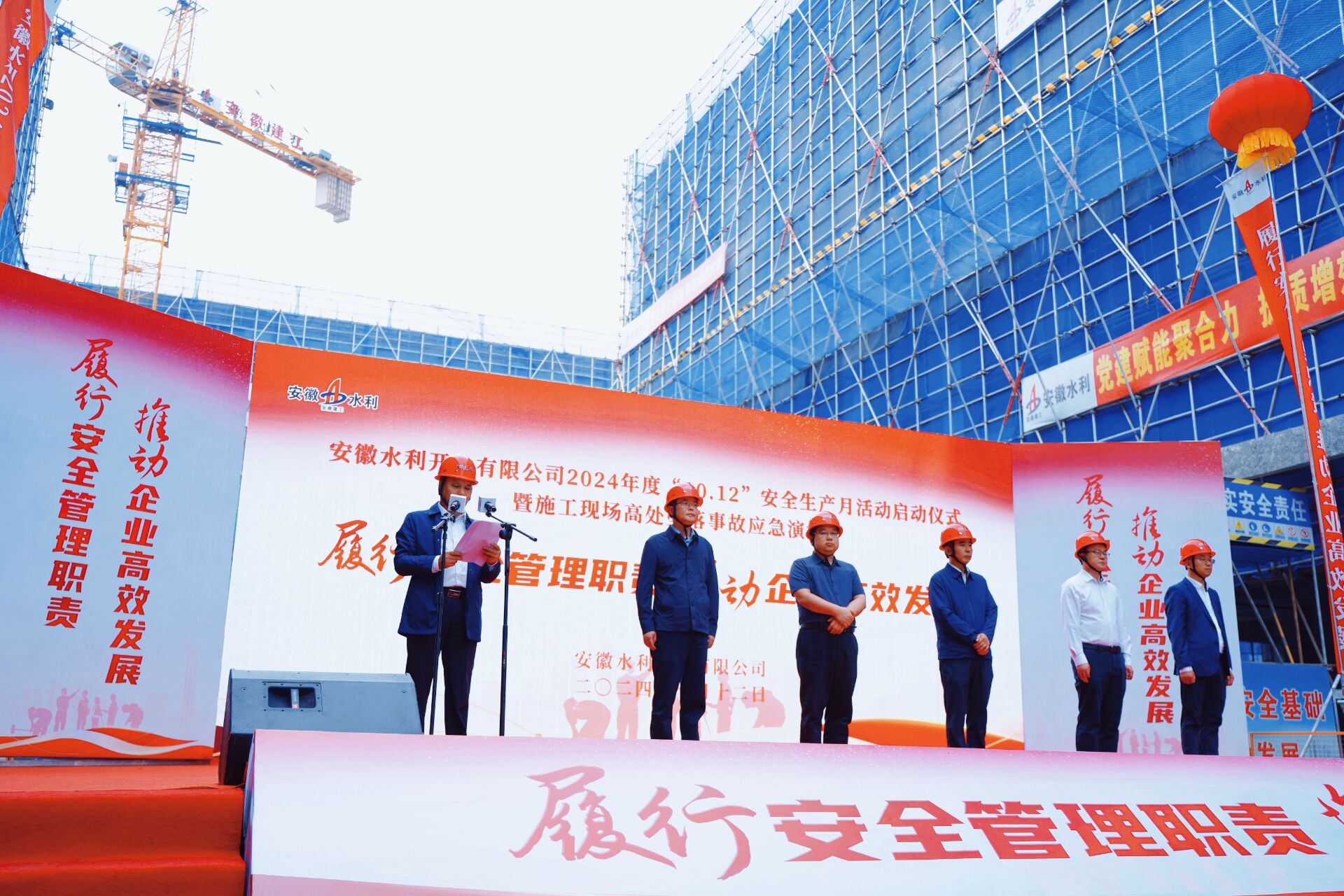 10月12日,安徽水利2024年度“10.12”安全生產(chǎn)月活動啟動儀式暨施工現(xiàn)場高處墜落事故應(yīng)急演練在高新區(qū)智能制造產(chǎn)業(yè)園EPC項目部順利舉行。安徽水利黨委副書記、總經(jīng)理杜海峰出席儀式并宣布活動正式啟動,安徽水利黨委委員、副總經(jīng)理洪杰主持并作動員講話。