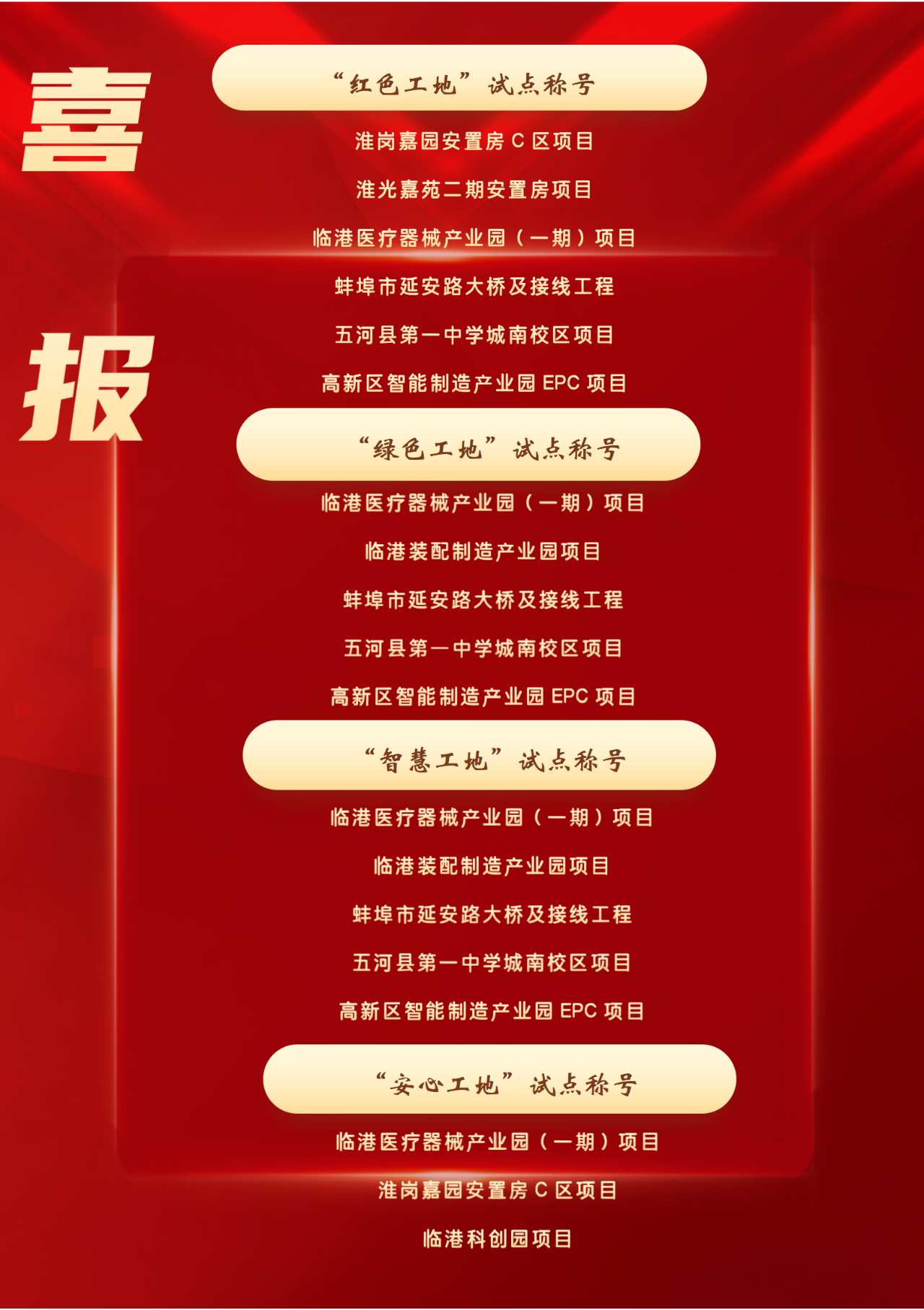 安徽水利八個(gè)項(xiàng)目榮獲“紅色工地”、“綠色工地”、“智慧工地”、“安心工地”試點(diǎn)項(xiàng)目稱號(hào),標(biāo)志著公司項(xiàng)目質(zhì)量安全管理水平得到主管部門的進(jìn)一步認(rèn)可,彰顯了國(guó)企良好的品牌形象。下一步,安徽水利將再接再厲,積極發(fā)揮黨建引領(lǐng)作用,不斷提升項(xiàng)目管理水平,為蚌埠經(jīng)濟(jì)社會(huì)發(fā)展貢獻(xiàn)力量。