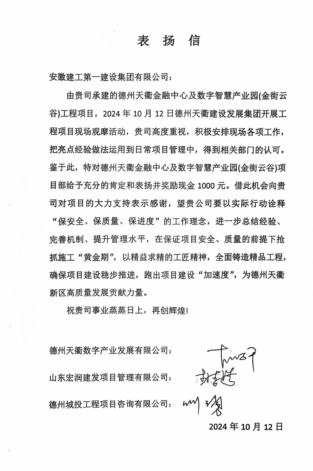 近日,天衢金融中心及數(shù)字智慧產(chǎn)業(yè)園項(xiàng)目在工程項(xiàng)目現(xiàn)場(chǎng)觀摩活動(dòng)中,因項(xiàng)目安全、進(jìn)度質(zhì)量管控優(yōu)異,經(jīng)天衢建設(shè)發(fā)展集團(tuán)評(píng)議,榮膺第一名,并獲建設(shè)單位、監(jiān)理單位、項(xiàng)目管理單位集體表揚(yáng)。