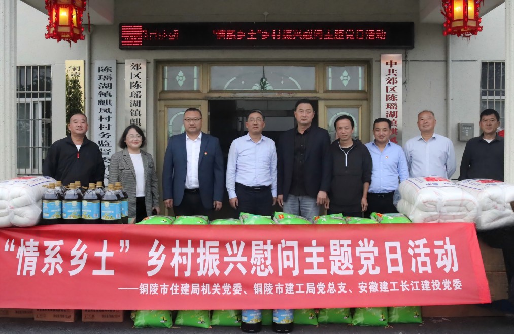 10月21日下午,安徽建工長(zhǎng)江建投聯(lián)合銅陵市住房和城鄉(xiāng)建設(shè)局、銅陵市建筑工程管理局前往銅陵市郊區(qū)陳瑤湖鎮(zhèn)麒鳳村黨群服務(wù)中心開(kāi)展“情系鄉(xiāng)土”鄉(xiāng)村振興慰問(wèn)主題黨日活動(dòng)。此次活動(dòng)旨在通過(guò)實(shí)地走訪、關(guān)懷慰問(wèn)困難村民,助力鄉(xiāng)村振興建設(shè)。銅陵市建工局黨總支書記、局長(zhǎng)何俊林,市建工局黨總支副書記、副局長(zhǎng)湯春華,市住建局駐麒鳳村第一書記、工作隊(duì)隊(duì)長(zhǎng)李峰,安徽建工長(zhǎng)江建投黨委書記、董事長(zhǎng)、總經(jīng)理代聲慶,黨委委員、副總經(jīng)理文敏參加活動(dòng)。