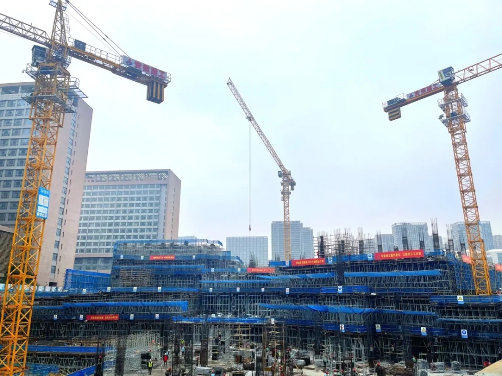 作為國內(nèi)首家臨床研究醫(yī)院、合肥綜合性國家科學中心健康領域重大創(chuàng)新平臺,中國科學院臨床研究醫(yī)院項目已全面封頂。該項目存在多項不規(guī)則復雜超限結(jié)構,材料規(guī)格要求高,加之項目地理位置特殊,施工場地狹小,甲方要求工期緊等原因,給項目建設帶來挑戰(zhàn)。