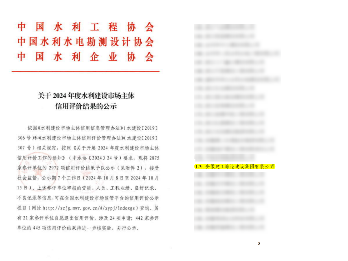 近日,從中國水利工程協(xié)會(huì)傳來喜訊,公司成功通過了2024年度水利建設(shè)市場(chǎng)主體信用評(píng)價(jià),榮獲“AAA”級(jí)認(rèn)證。這是對(duì)公司長(zhǎng)期以來在水利建設(shè)領(lǐng)域取得的成果和實(shí)力的充分肯定。