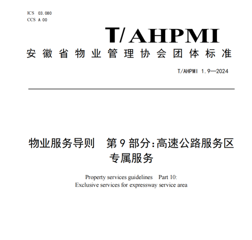10月28日,由安徽建工集團(tuán)新時(shí)代物業(yè)管理有限公司參編的《安徽省物業(yè)管理協(xié)會(huì)團(tuán)體標(biāo)準(zhǔn)》中《物業(yè)服務(wù)導(dǎo)則 第9部分:高速公路服務(wù)區(qū)專屬服務(wù)》正式發(fā)布。